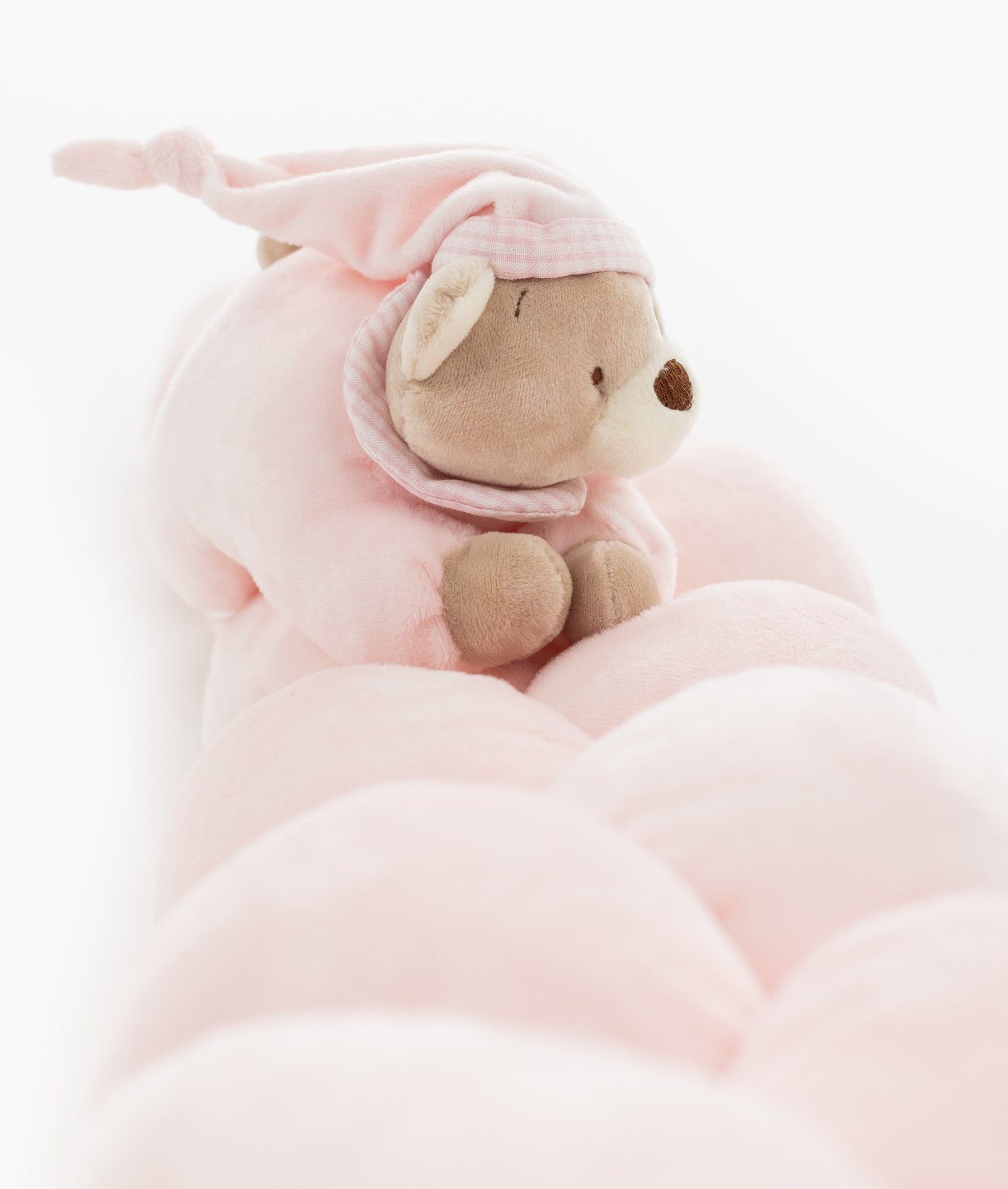 Ideal for use as a decorative nursery accent, during tummy time, supervised playtime, or as a soft barrier in sleep spaces. This braided bumper is machine washable at 30°C for easy care; however, the rattle must be removed before washing. After washing, air dry flat only to maintain its shape and softness. Do not tumble dry, bleach, or iron, and ensure the bumper is completely dry before use.